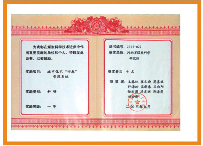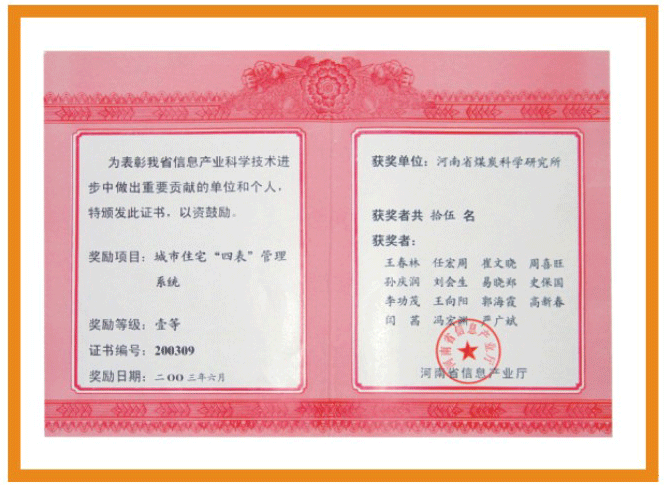公司自主研發(fā)的“遠程計量管理系統(tǒng)”通過了河南省科技廳組織的成果鑒定,并獲得河南省科技進步三等獎,專家結(jié)論認為“該系統(tǒng)功能齊全,安全措施完善,操作簡便,在技術(shù)上達到國內(nèi)先進水平”。該系統(tǒng)可廣泛應(yīng)用于住宅小區(qū)、寫字樓等有抄表需求和需要實時抄表并監(jiān)控管理的單位和部門。